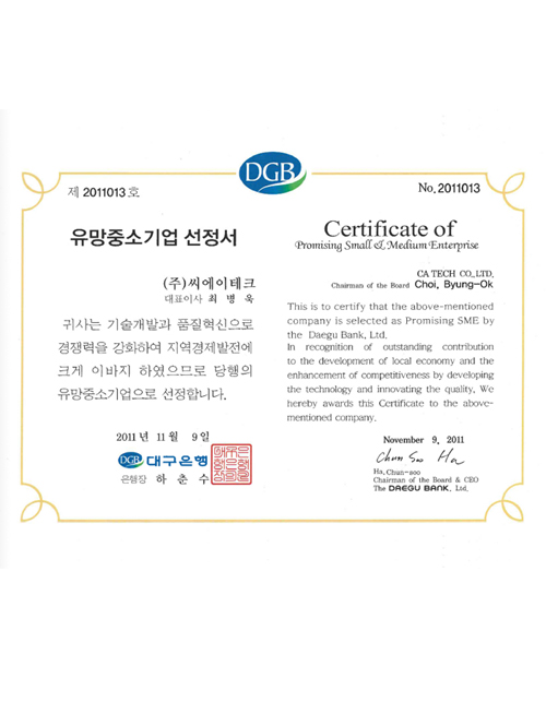 | 2011 | 2011. 11 | 유망중소기업선정(대구은행) |